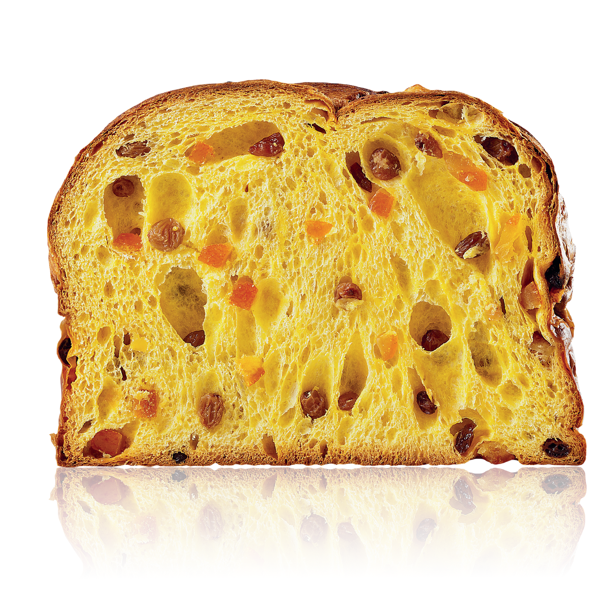 Prodotto con lievito naturale (48 ore di lievitazione con lievito madre) e arricchita con scorzette di arancia candite al naturale e uvetta. Glassato con granella di zucchero e mandorle.