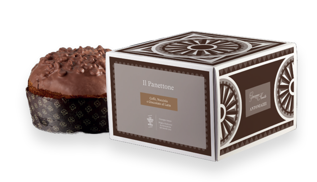 Prodotto con lievito naturale (48 ore di lievitazione con lievito madre), soffice impasto al caffè arricchito con cubetti di pasta di nocciole e gocce di cioccolato al latte. Glassato con cioccolate al latte e pasta di nocciole.